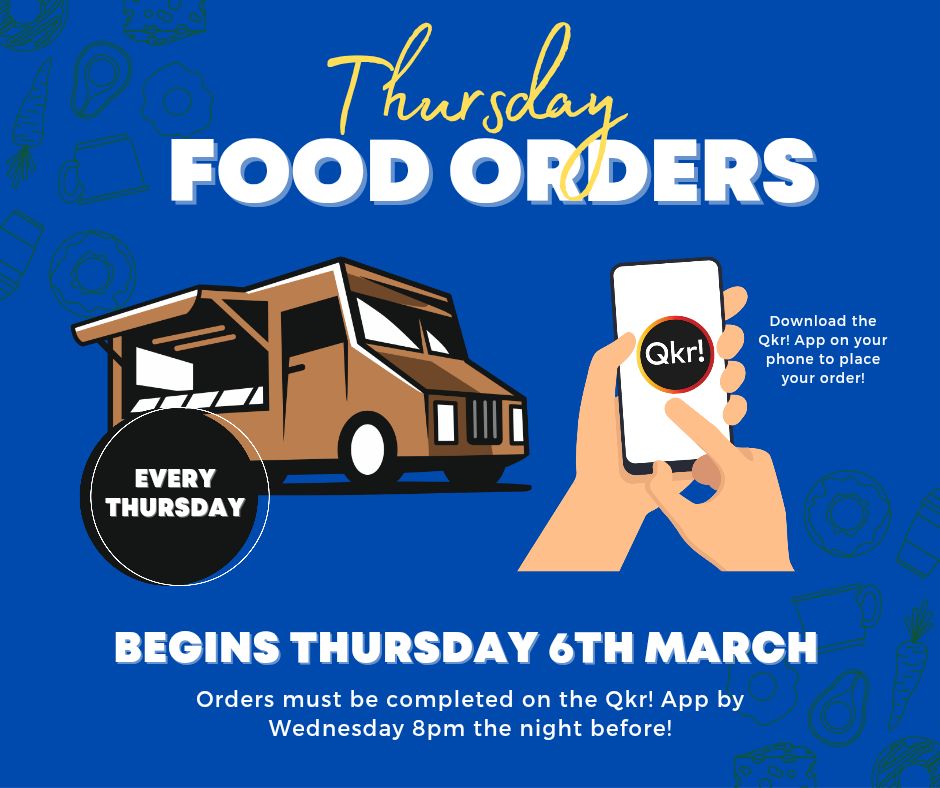 Our Food ordering system is now ready to go! Lunch ordering will ONLY occur on Thursdays.