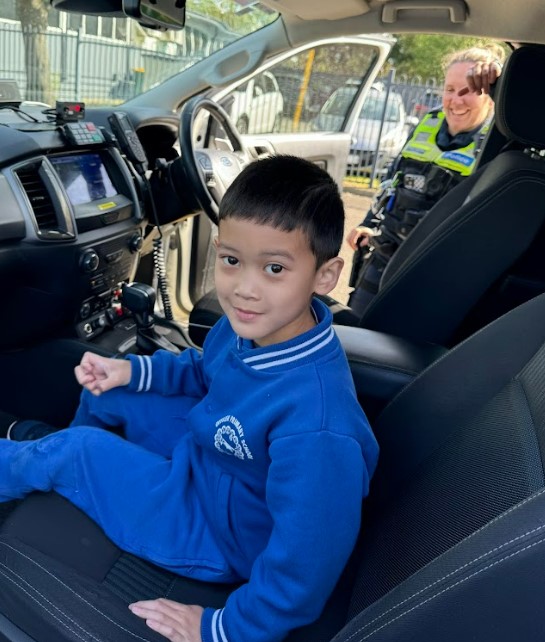 On Tuesday, we were very privileged to be visited by Victoria Police who spoke to the P-2 group and 3-6 group regarding topics such as safety, police roles and responsibilities and the various equipment they have!